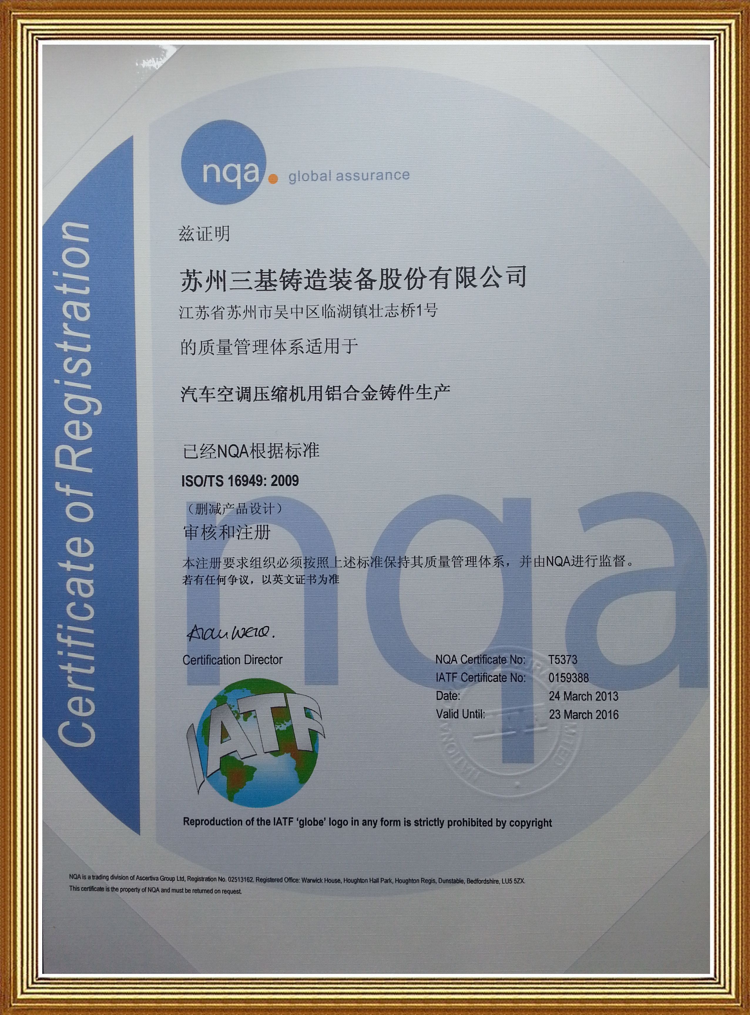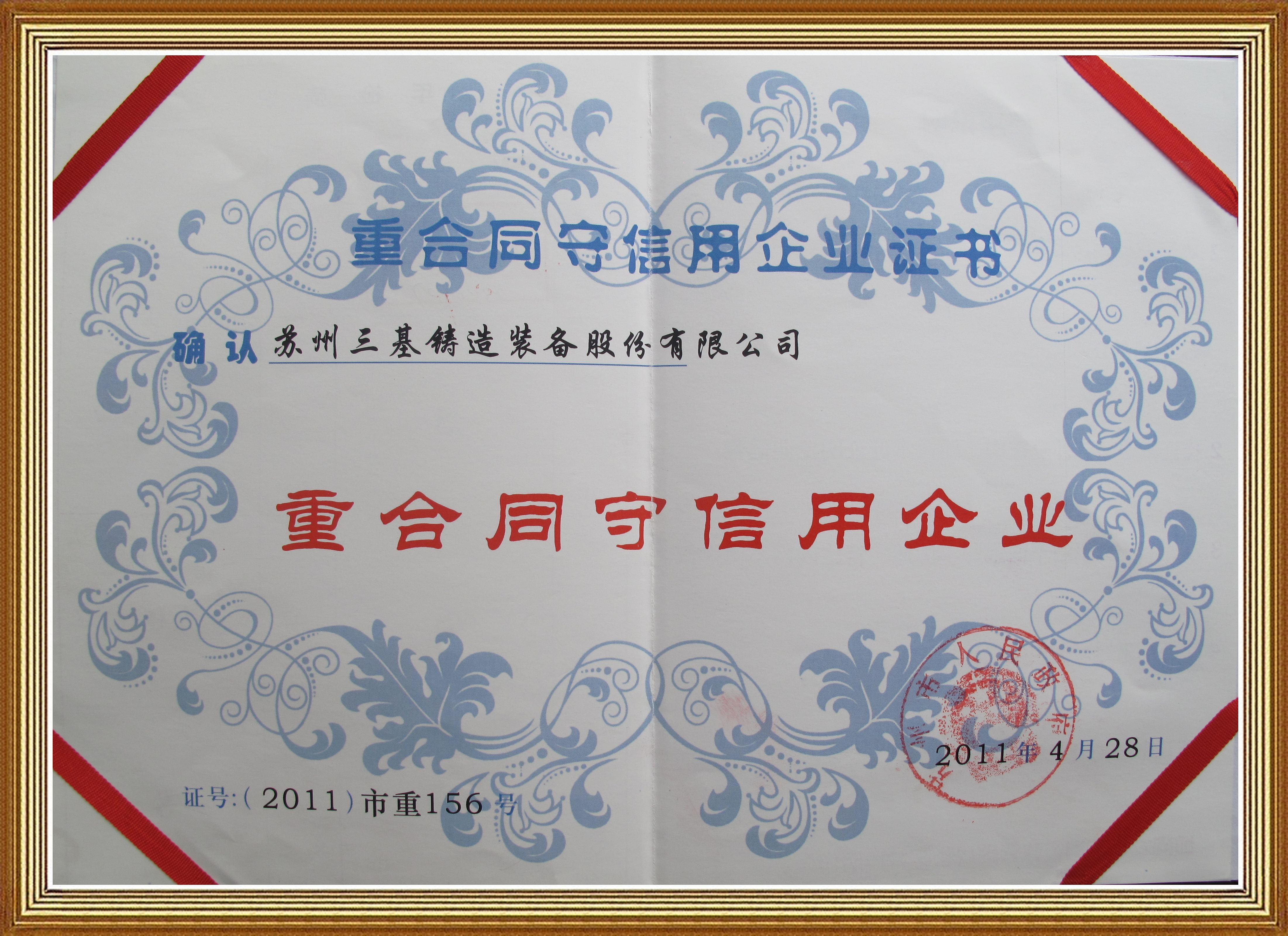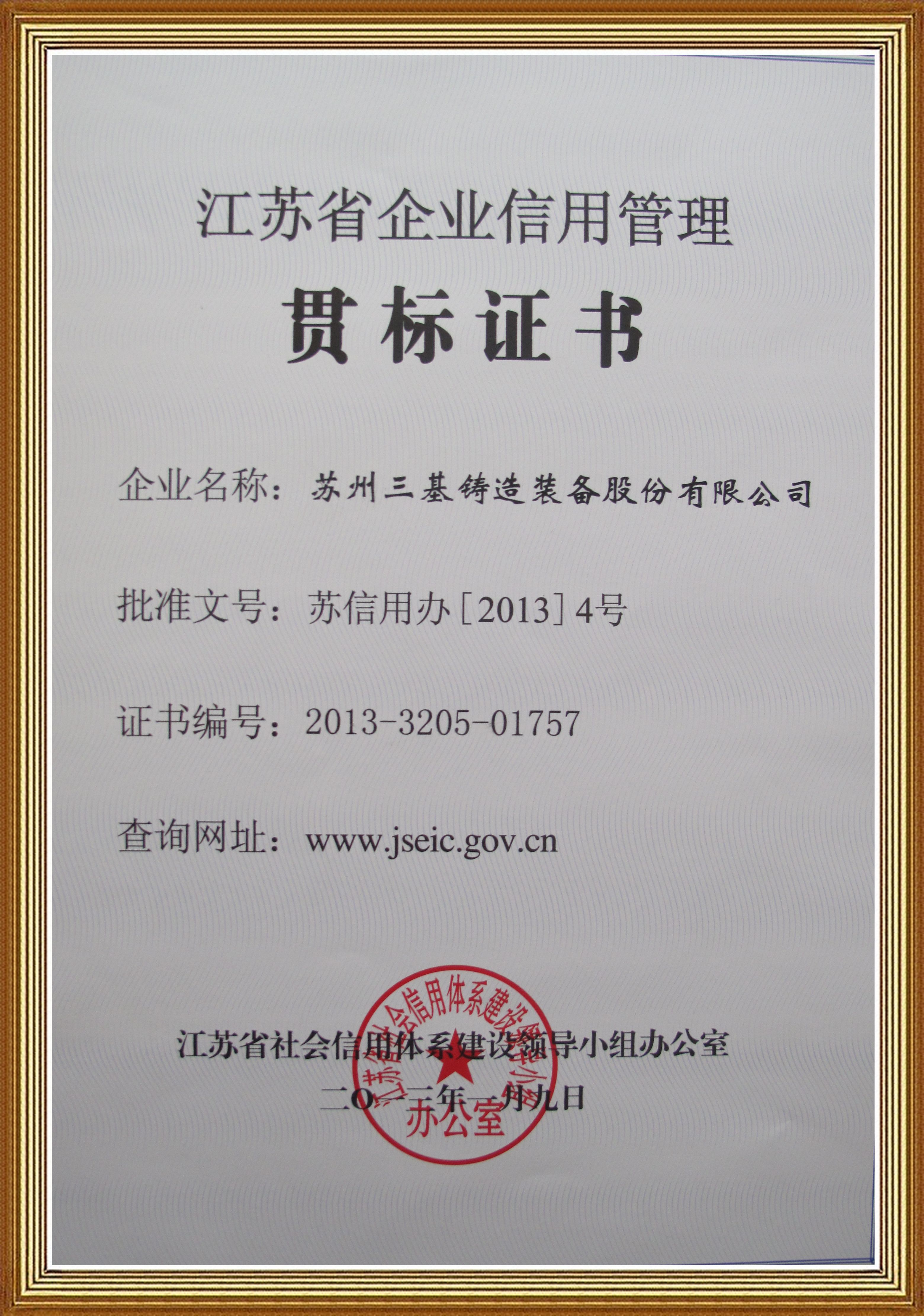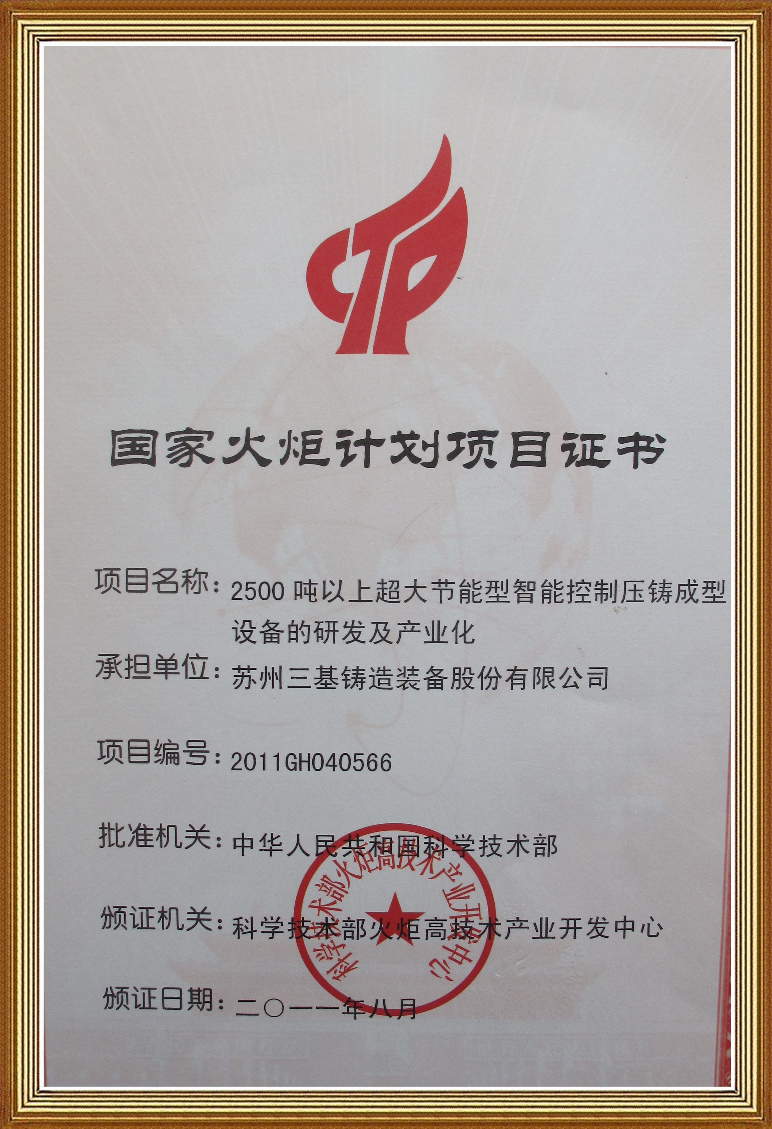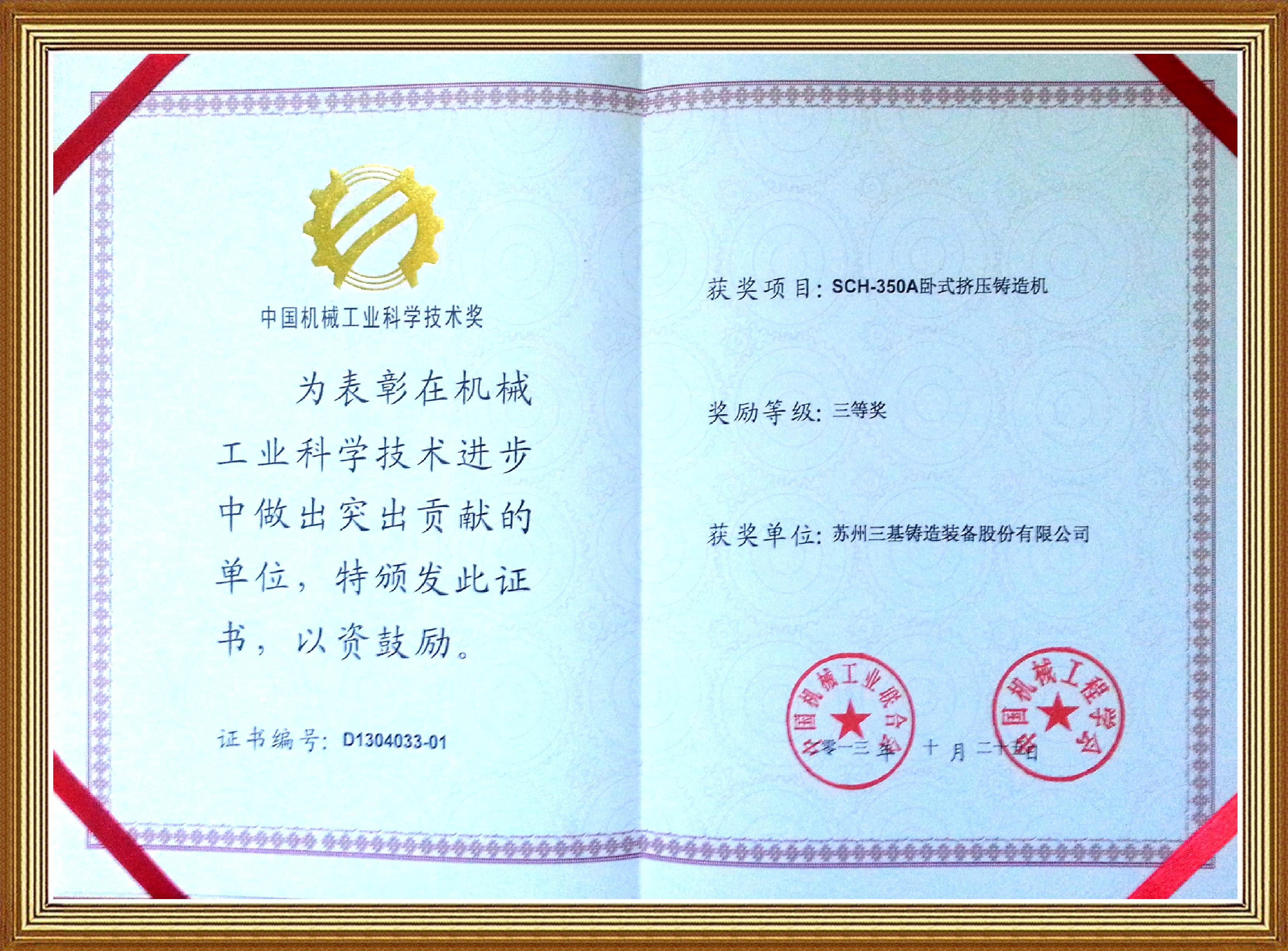 歷程23年,三基鑄造先后獲得了“江蘇省科技進(jìn)步獎(jiǎng)”、“江蘇省機(jī)械行業(yè)科技進(jìn)步”、“蘇州市科技進(jìn)步獎(jiǎng)”、“蘇州市雙杯獎(jiǎng)”、“國(guó)家重點(diǎn)新產(chǎn)品”、“江蘇省優(yōu)秀新產(chǎn)品”、"江蘇省優(yōu)秀新產(chǎn)品金獎(jiǎng)"等榮譽(yù)
